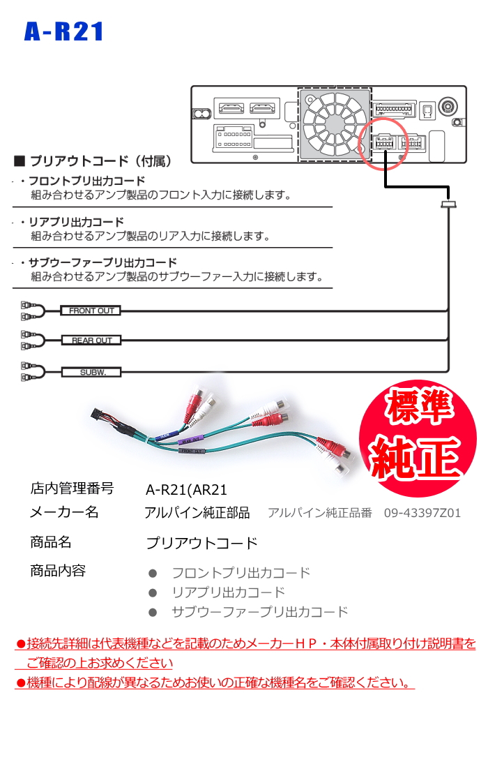 ALPINE アルパイン DA7Z 純正部品 フロント・リア・サブウーファー用 プリアウトコード (AR21 收藏