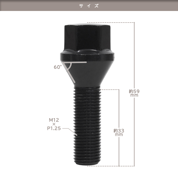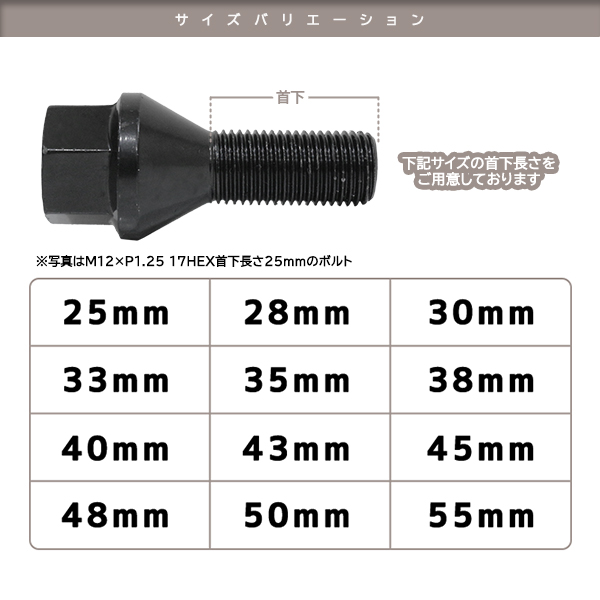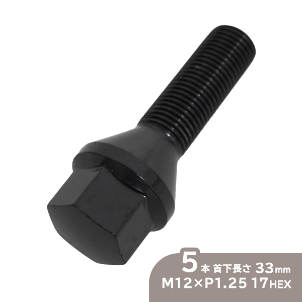ю 【メール便】 ラグボルト [ M12×P1.25 17HEX 60度テーパー 首下:33mm ブラック ][ 5本 ] スチール製 ホイールボルト 輸入車 收藏