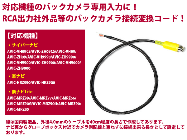 カロッツェリア バックカメラ変換 入力ケーブル RD-C100 互換品 配線 コード 接続 カーナビ カーパーツ 收藏