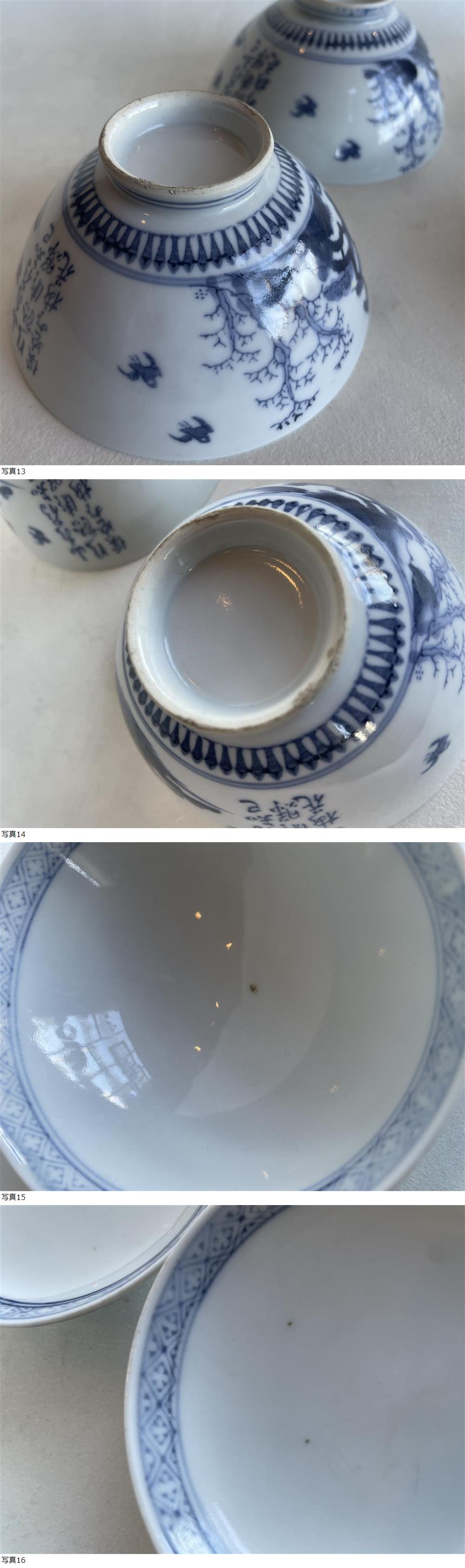 | 古伊万里 伊万里焼 染付 楼閣山水 漢詩文 蓋付 茶碗 煮物椀 2客 骨董 2/4 |