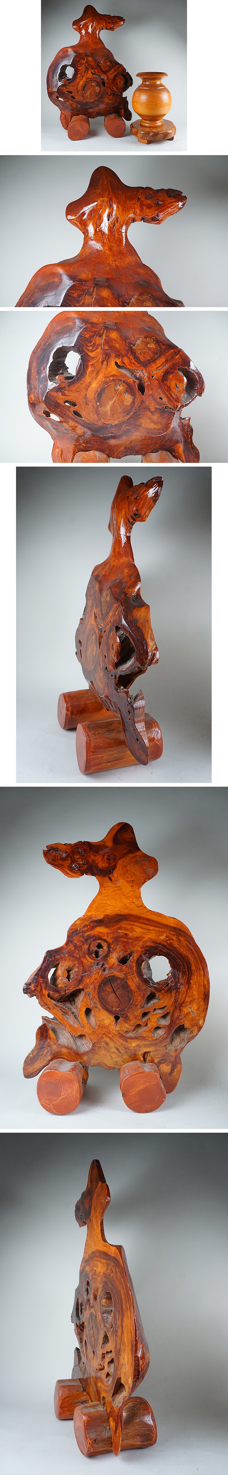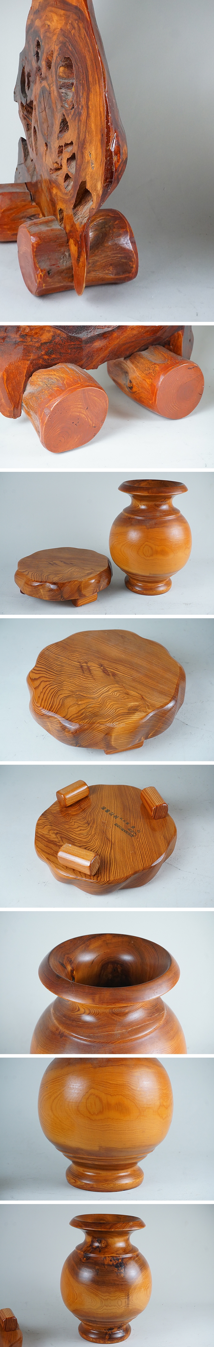 | E-040■土埋木 屋久杉造り 衝立飾り 花台と花瓶 合計三点 | ||