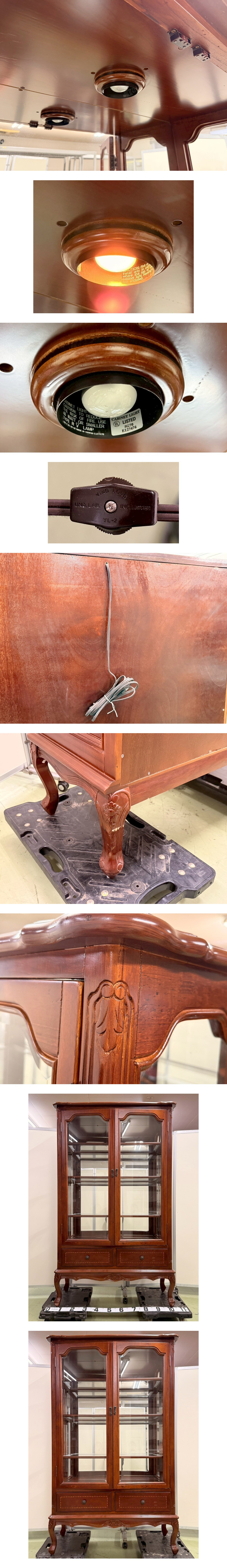 アンティーク調 キャビネット 照明付き ガラス 飾り棚 キュリオケース ロココ調 猫脚 ショーケース ディスプレイ コレクションボード 收藏