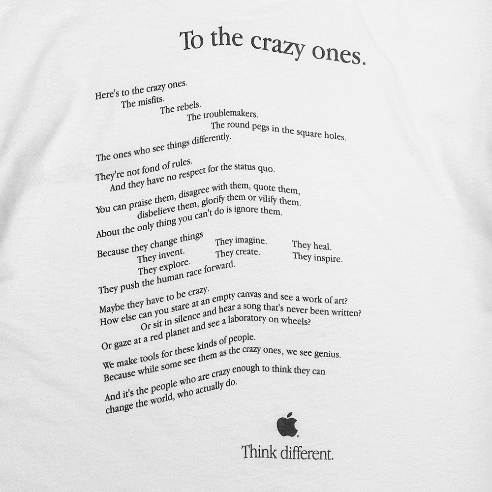 90s ビンテージ Apple アップル Think Different Tシャツ M オフィシャル物 To the crazy ones Hanes BEEFY MADE IN USA製 コットン 企業系 收藏