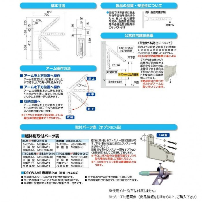 DRY・WAVE(ドライ・ウェーブ) 窓壁用物干金物 (ST/ステンカラー) KAL85(ST) 收藏