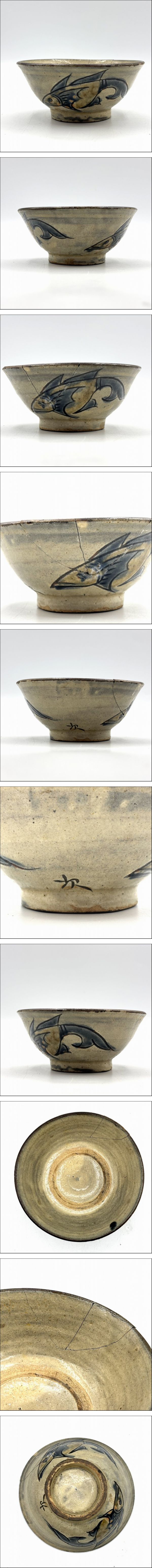 【え沖】人間国宝 金城次郎 作 やちむん 魚文 マカイ 茶碗 直径約15.5cm 高さ約7cm 沖縄 壷屋焼 伝統工芸 彫銘有 MK238MGG55 收藏