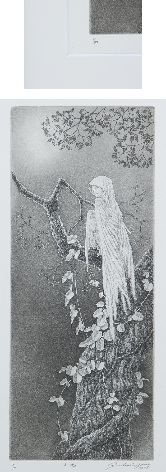 【1on1】真作 長野順子 『月光』 銅版画 ed.30 2013年 直筆サイン 額装 ■ 国際的活躍 幻想的世界観 東京芸大大学院修了 挿絵画家 收藏