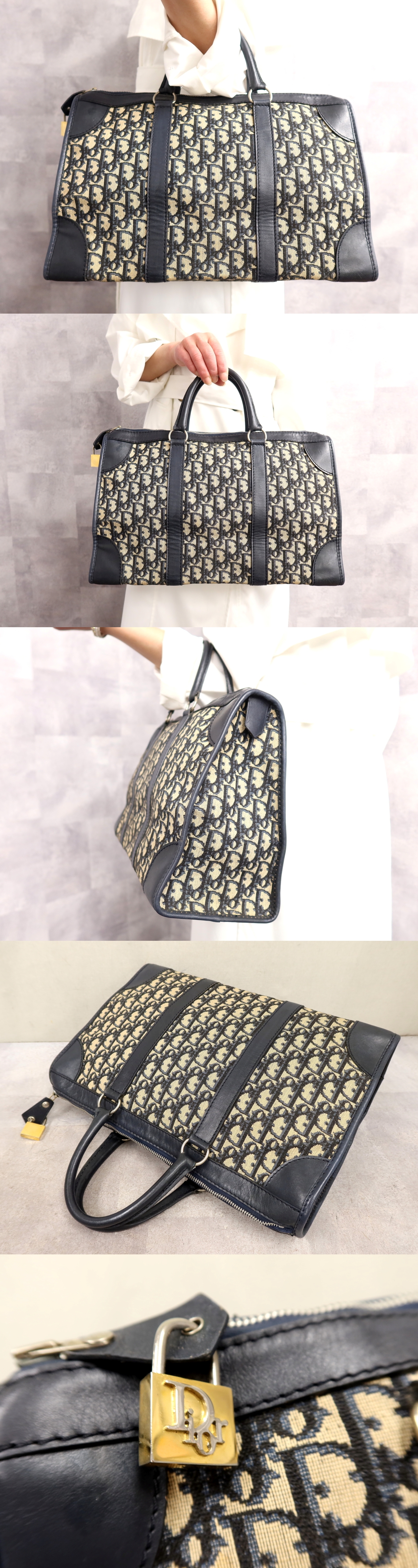 ●超美品●クリスチャン・ディオール●トロッター●キャンバス カーフ レザー 本革●ボストン バッグ●ネイビー 白●SV金具●収納●Js66691 收藏