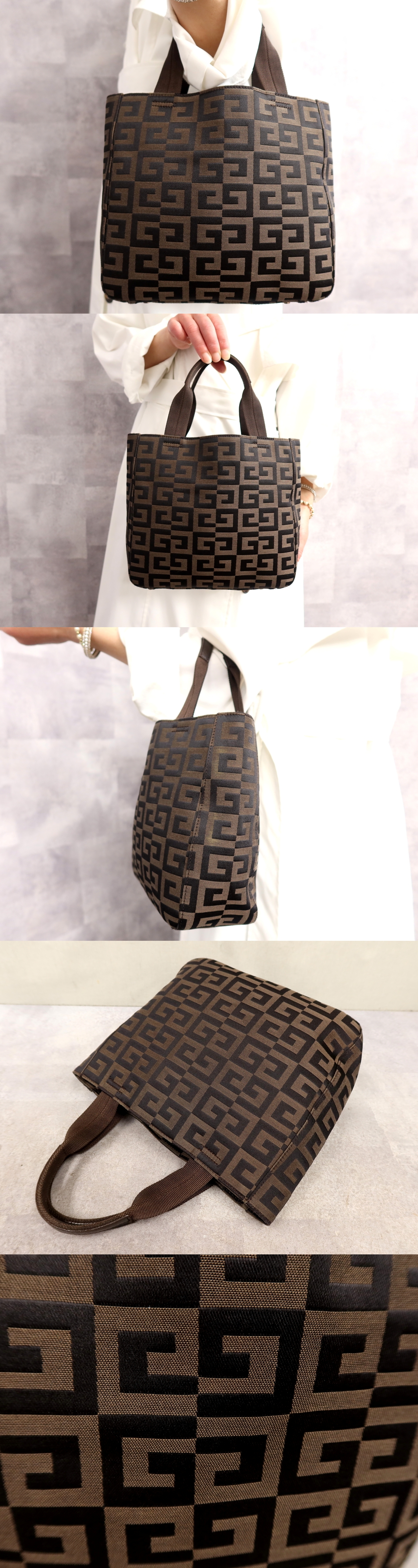 ●超美品●GIVENCHY ジバンシィ●キャンバス カーフ レザー 本革●ハンド トート バッグ●ブラウン系●シルバー金具●収納 かばん●Js66665 收藏