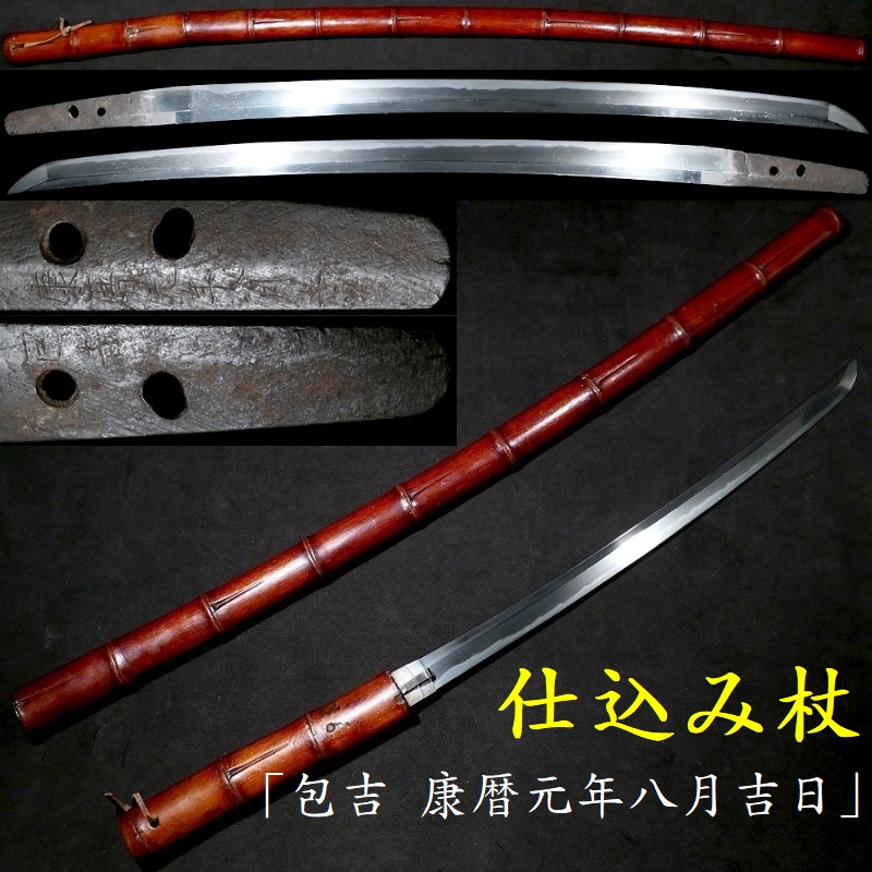 珍品! 仕込み杖(仕込み刀) 南北朝期! 「(大和手掻)包吉 康暦元年八月吉日」在銘 脇差 【安値出発】k102 收藏