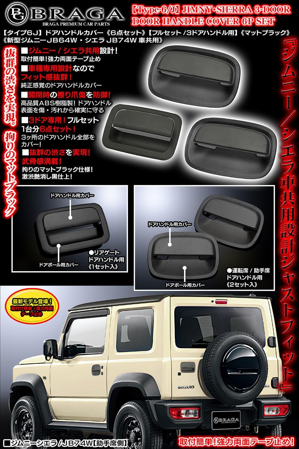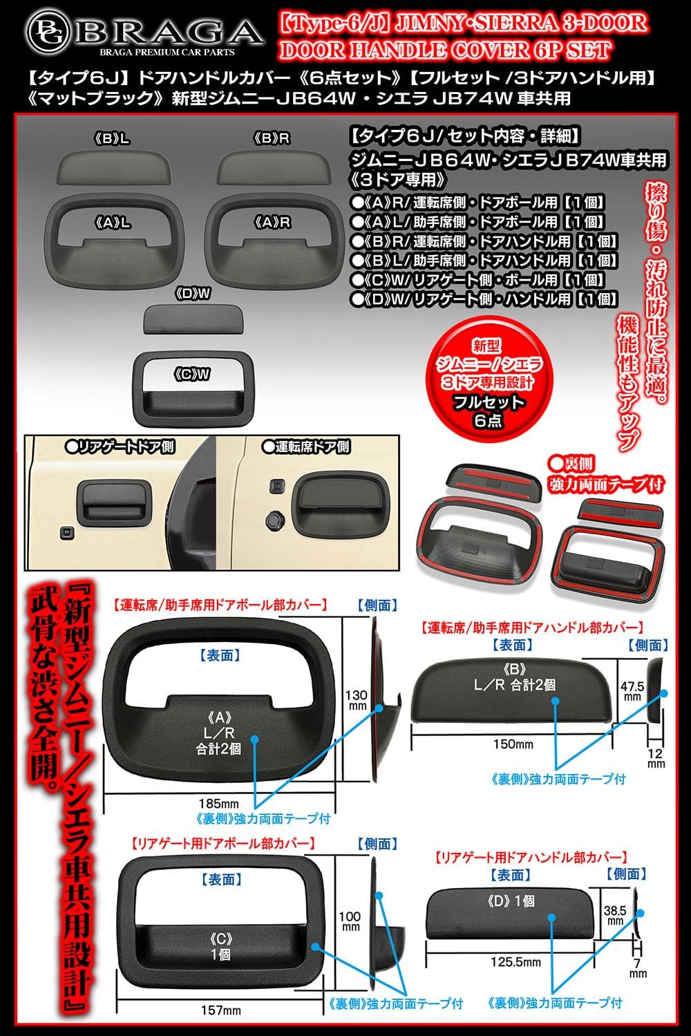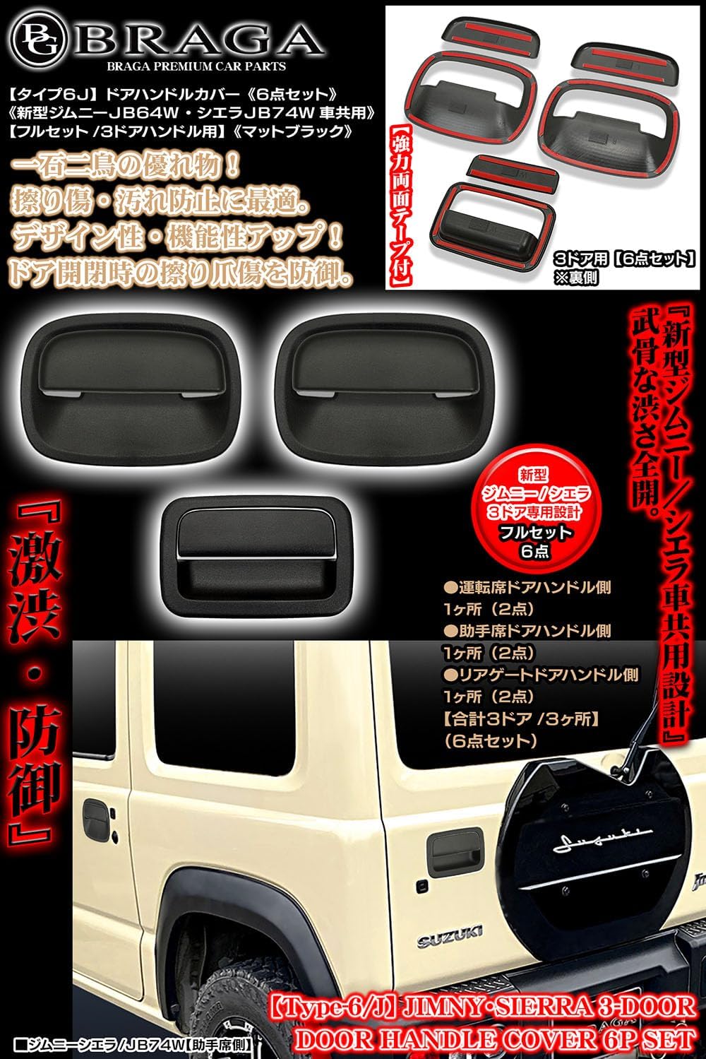 【タイプ6J/6P】ドア ハンドル ノブ カバー/ジムニー JB64W シエラ JB74W車用/6点セット 1台分フルセット/武骨な無地マットブラック 艶消し黒/取付簡単 強力両面テープ止め/ブラガ BG BRAGA