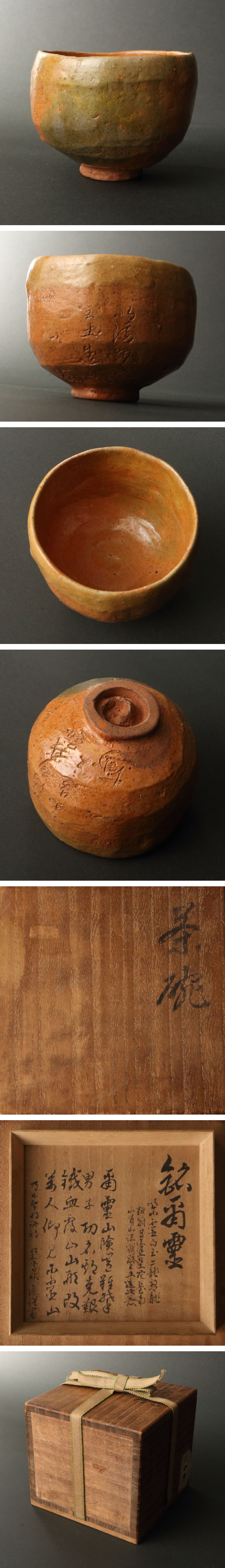 委託HK◇渡辺烏城 烏城焼手造赤楽茶碗 銘「爾霊」以満洲之土造(茶道具 楽焼 抹茶碗 漢詩 乃木希典 乃木神社 二〇三高地 日露戦争) 收藏