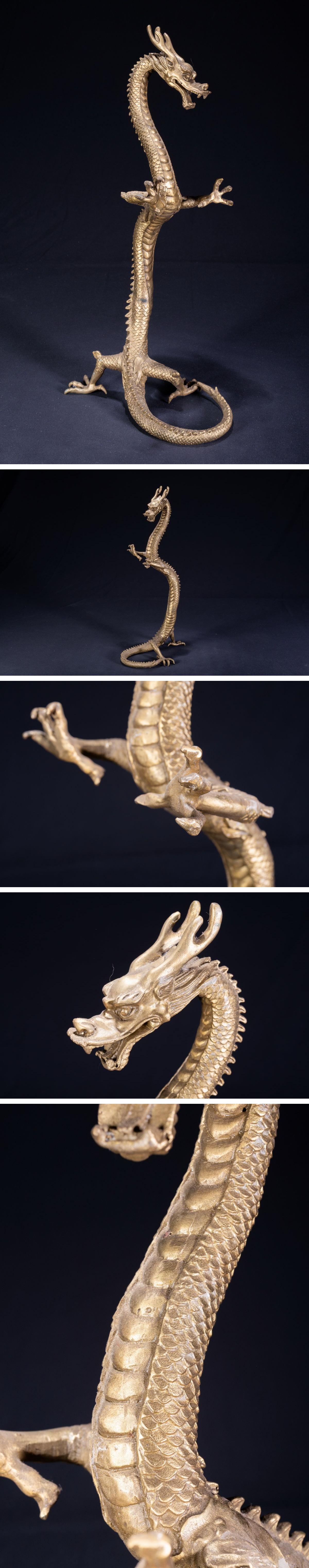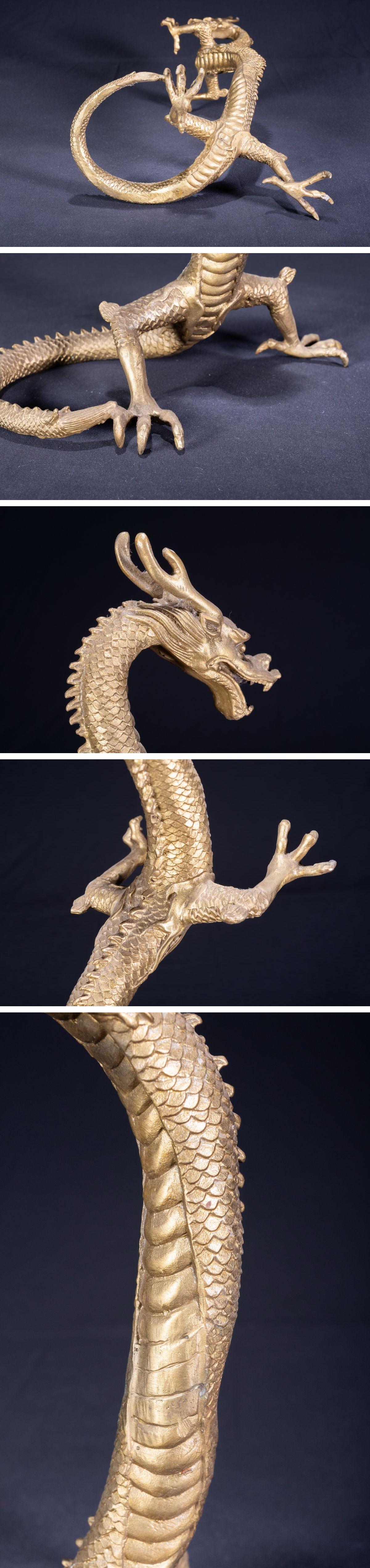 【珍品堂】1円から 古銅 青銅 銅器 銅製 龍彫 細密彫刻 希少品 時代物 古美術 骨董品 H23cm。重1816g M-A41T-F3 收藏