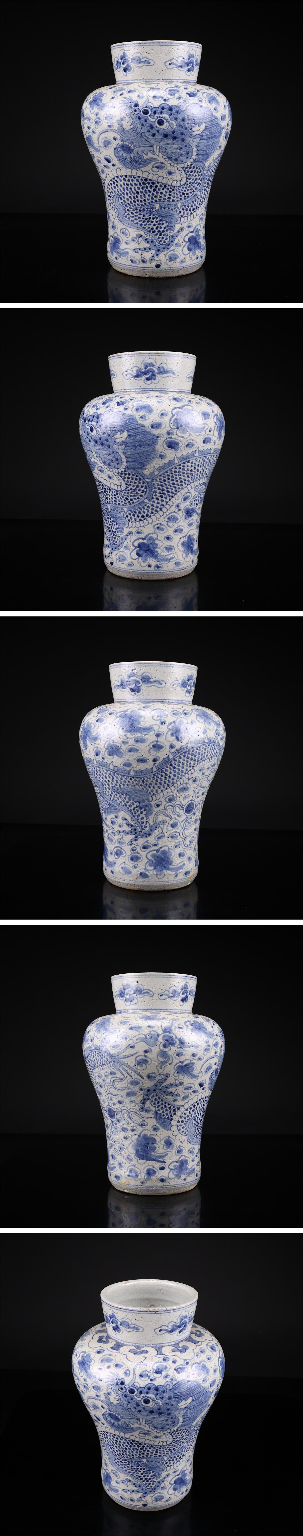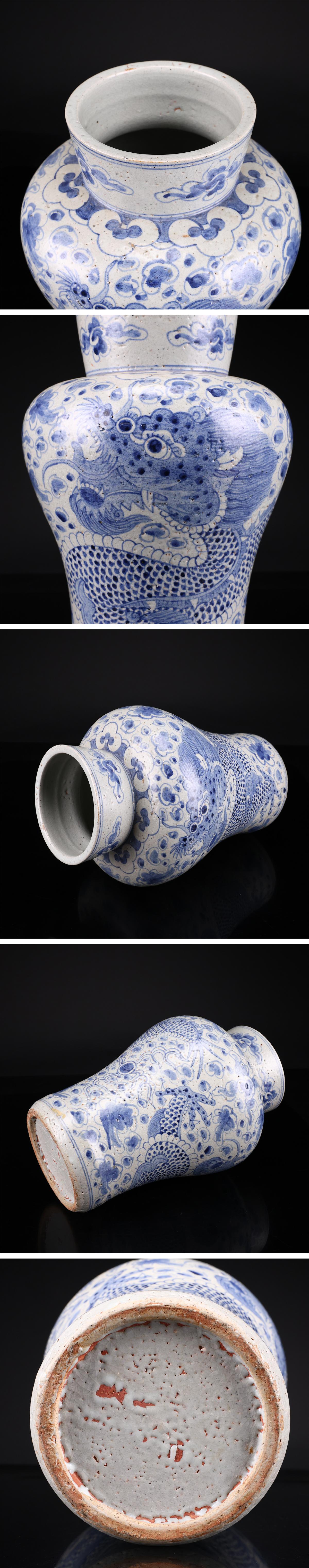 【吉】CR072 【李朝時代】 染付 龍紋 大花瓶 高33.5㎝/無傷 極美品ZN! 收藏