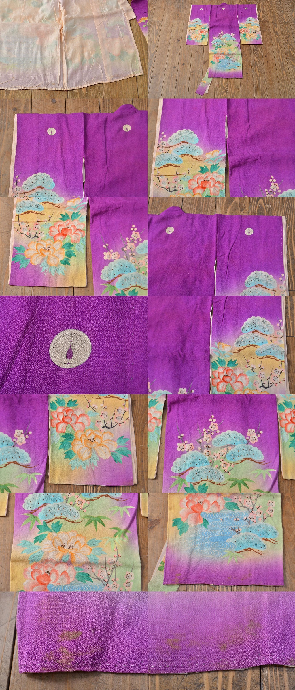 R-051869 大正~昭和初期 梅に牡丹 アンティーク 縮緬着物(正絹、古布、ちりめん)(R-051869) 收藏