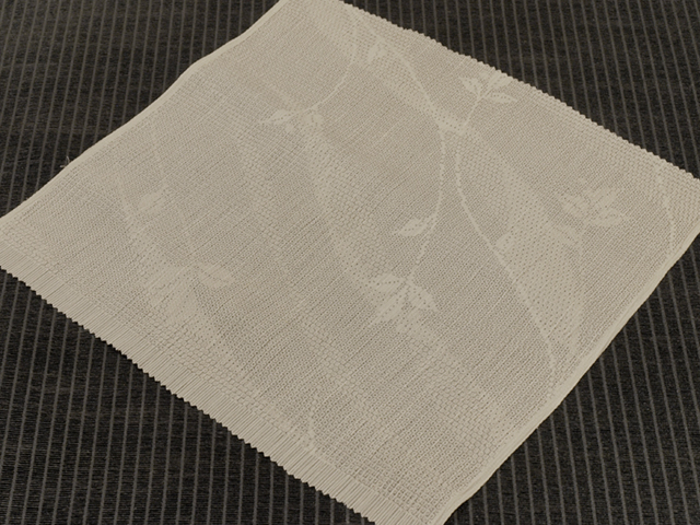 きなり色の地に、絣で亀甲と唐草の文様が織り込まれている縮みのはぎれです。透け感があります。 未使用保管品の残布です。※風楽の出品内で同じ柄のものを複数出品している場合もあります。 |