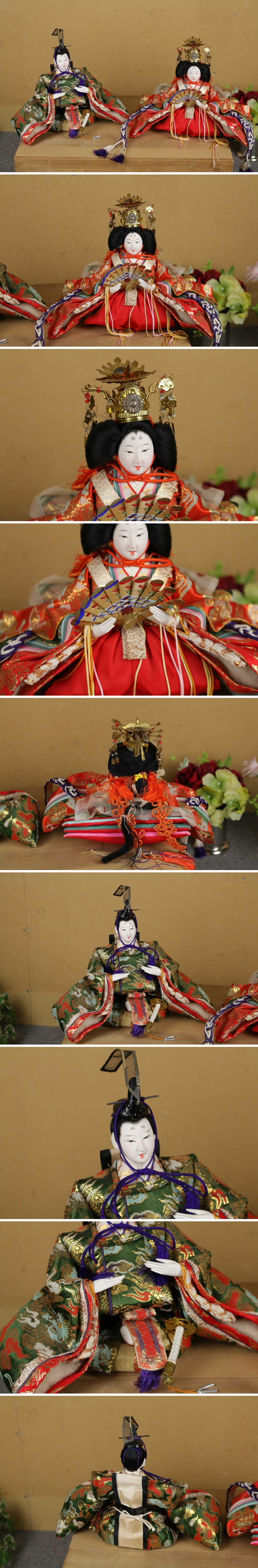 | 雛人形 ひな人形 親王飾り 人形のみ 外寸:高200×横250~290×奥170~200mm 中古品 傷汚れがあります。 かんむりに折れあり。 笏は欠品です。 人形ののみでその他の小道具はありません。 出品の商品は背景のものを除く画像のもので全てです。 サイズは約です、多少の誤差はご容赦下さい。 | ||