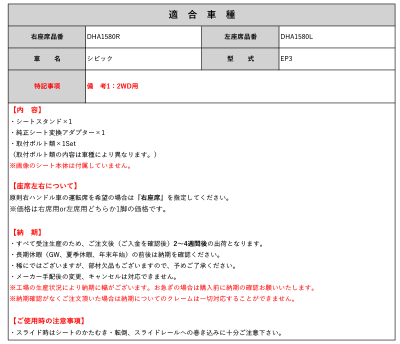 [N SPORT]EP3 シビック(2WD)純正シート用ゲーミングシートスタンド(キャスター付き)[6×6ポジション] 收藏