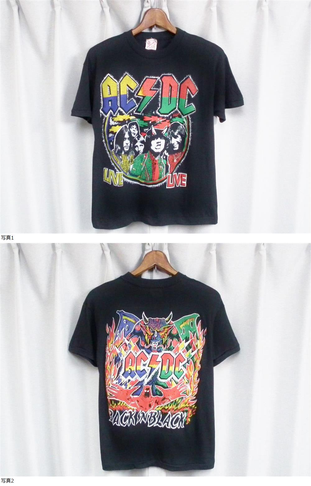 ◆80s パキ綿 袖裾シングル◆AC/DC BACK IN BLACK ブート ヴィンテージ バンド Tシャツ バックインブラック ロック パンク 收藏