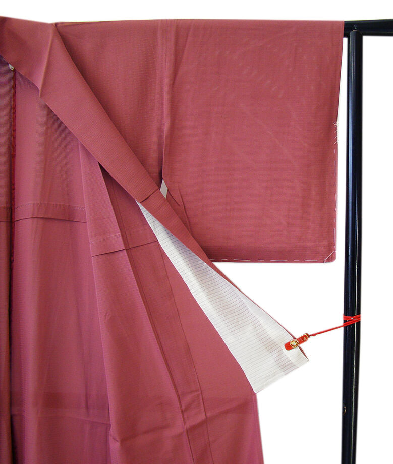 商品説明 | こちらのお品は夏物でございますので、7月~8月にお召頂ければと思います。 「絽」と言えば、紗と双璧を成す夏のお着物の生地で、 その最大の魅力は絶妙の透かし加減でございます。 清涼感溢れる地の風を通すしなやかさは夏に着物を着るという贅沢を 快適に愉しませてくれる事でしょう。 着物には、大きく分けて「袷(あわせ)の着物」と 「単衣(ひとえ)の着物」と「夏着物」があります。 反物(表地)を着物に仕立てるときに、裏地類をつけるものを袷の着物、 つけないものを単衣の着物と呼び、胴裏や八掛といった 裏地がつかない一枚ものの着物です。 また裏地がないため、座る時などにヒップのラインが目立たないよう、 居敷当て(いしきあて)の生地をつけることもあります。 居敷当ては付いておりません。 とても滑らかでしなやかなさらっとした手触りの上質な「駒絽」の生地は、 浅蘇芳色地の色無地着尺、背には「丸に蔦」の紋1ヶ入っております。 |