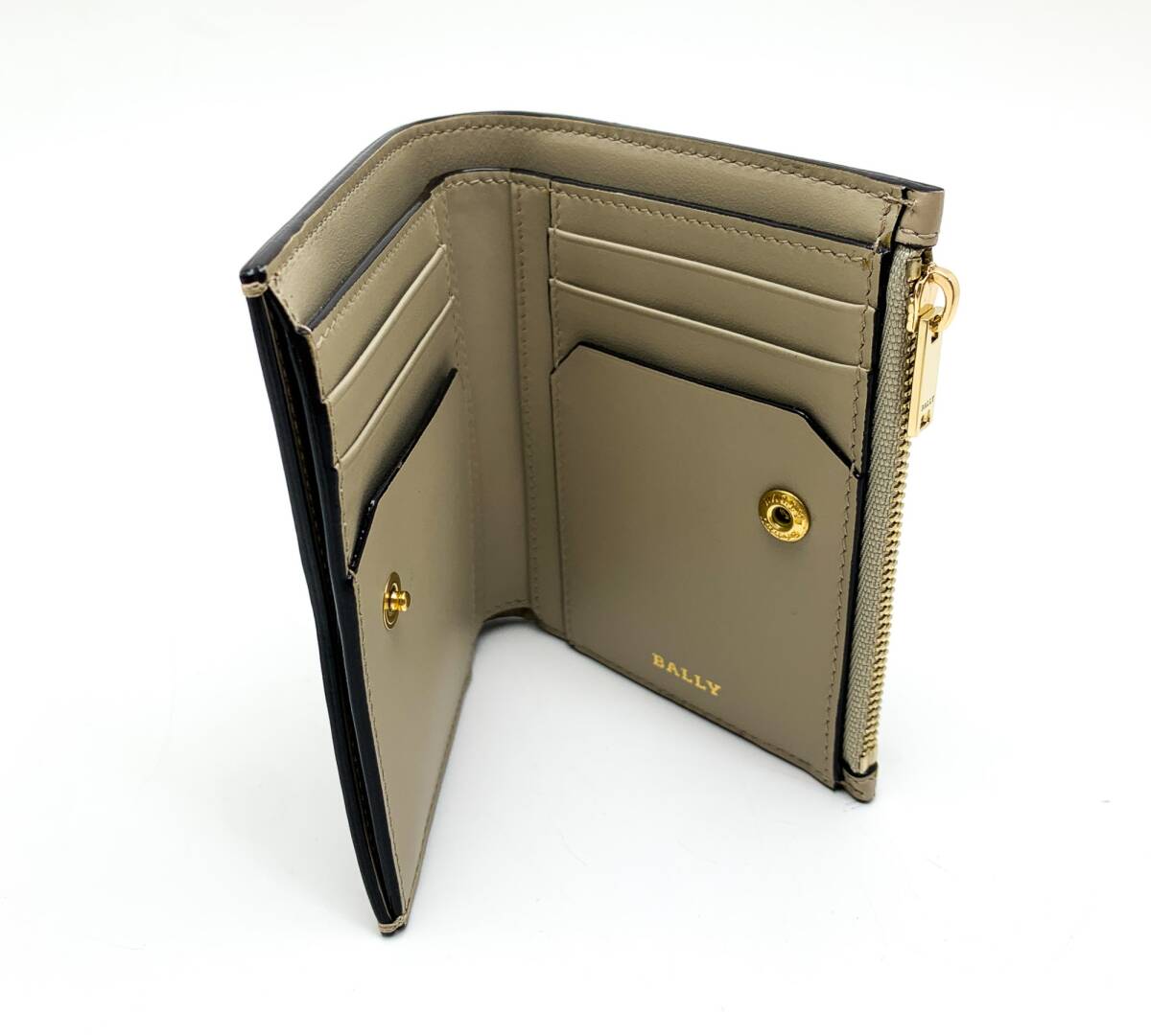 BALLY バリー グレージュ系 ニュアンスカラー 二つ折り サイフ コンパクトウォレット ブランド 財布 收藏