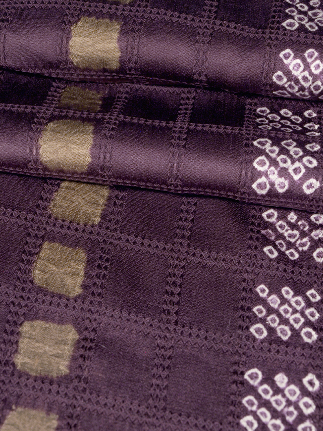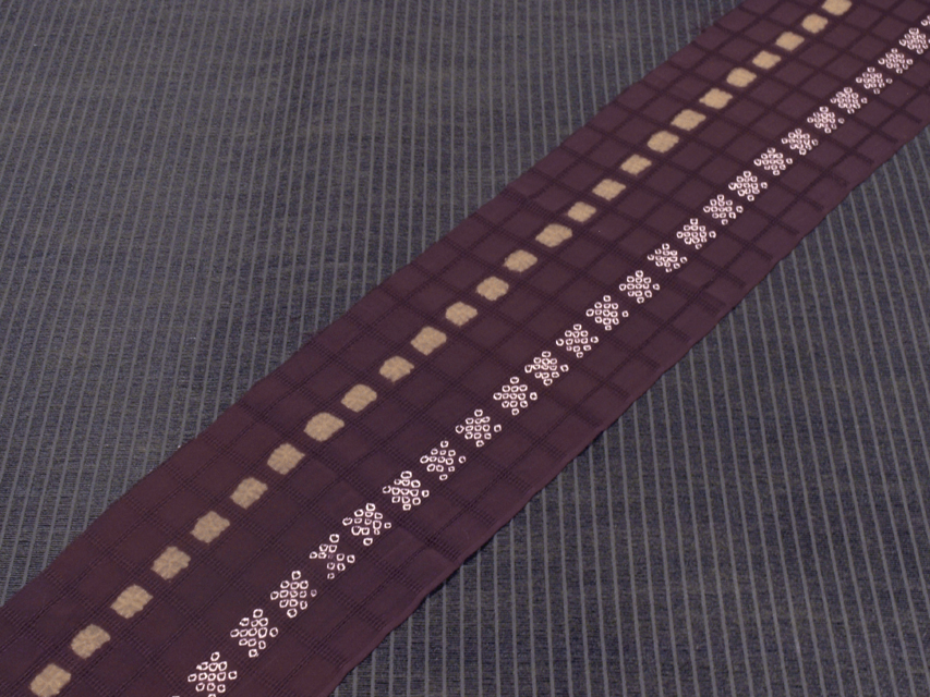 【紫根染】格子縞に角縞文 絞り 紋綸子縮緬 草木染 古布 はぎれ ハギレ 146×17 TANJ06012風楽 |