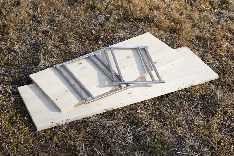ワンバイ木板を使用して、テーブルや棚を簡単にセットアップできる。