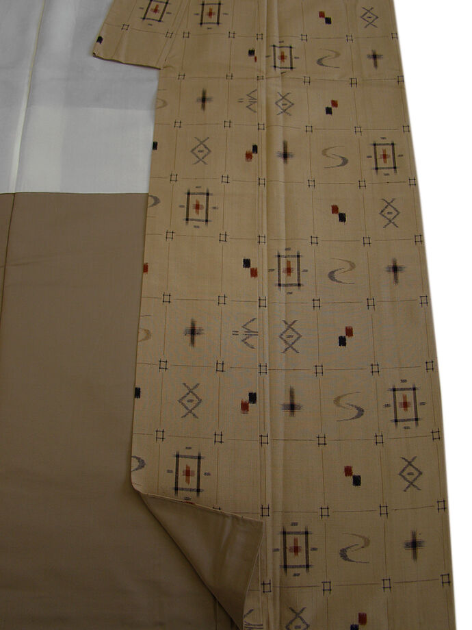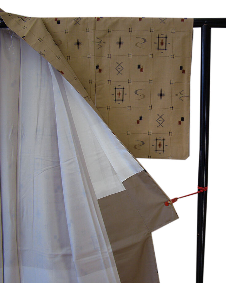 商品説明 | こちらのお品は「袷」ですので10月から5月までお召頂ければと思います。 しなやかな紬は、着易く動きも軽く、着くずれしない腰の強さを併せ持った お洒落着としていつでもどこへでもお気軽にお愉しみ頂けご愛用頂けるお品です。 とてもしなやかな肌触りも心地よい柔らかな紬地は、 渋い白茶色地に鼠、茶、黒色等の絣柄の織柄、 八掛は胡桃染色(正絹)、幅広い年代の方にお召し頂けます。 |