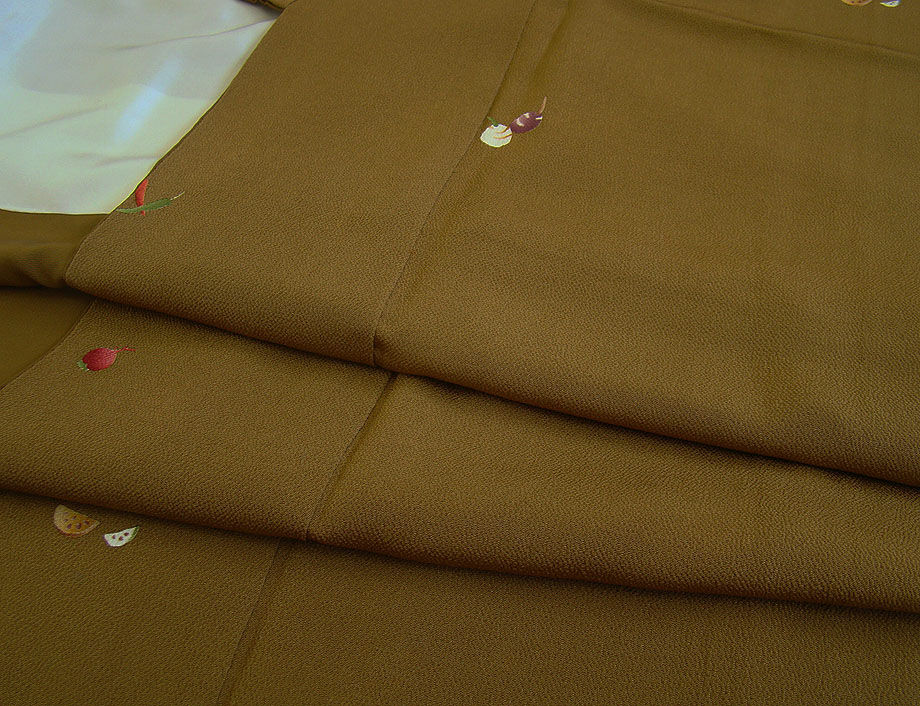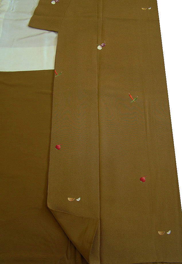 ※お洒落な縮緬地の小紋です。 お茶事に最適でしょう。 40代~70代迄幅広く着用出来ます。 身長147cm~153cmの貴女に最適です。 |