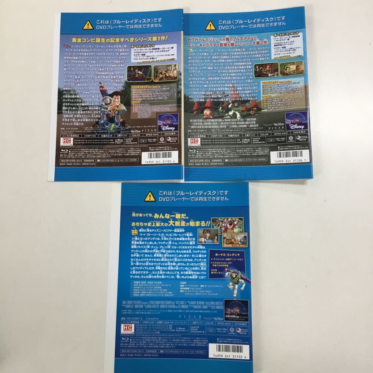 【D19】3枚セット★Blu-ray★トイストーリー1 2 3★レンタル落ち★ケース無し(3069)