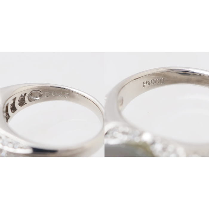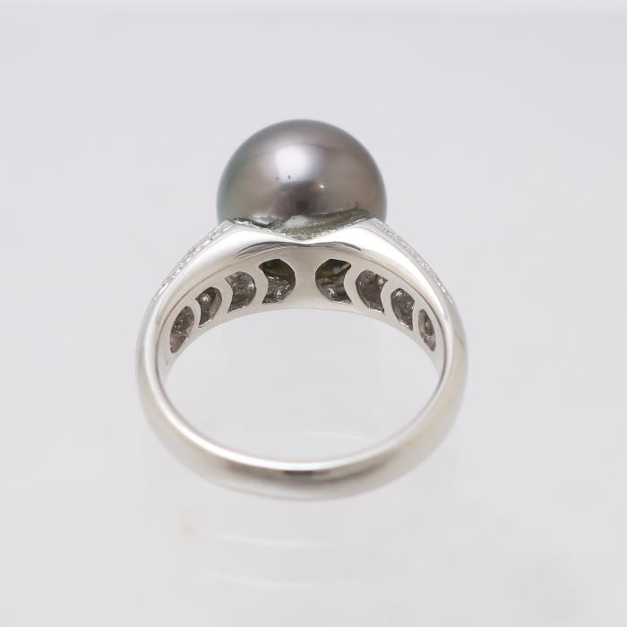 PT900 クロチョウ パール ダイヤモンド リング 12号 12mm D:0.45ct 黒蝶 真珠 指輪 6月 誕生石 ジュエリー 仕上済 ソーティング付◆中古品 收藏