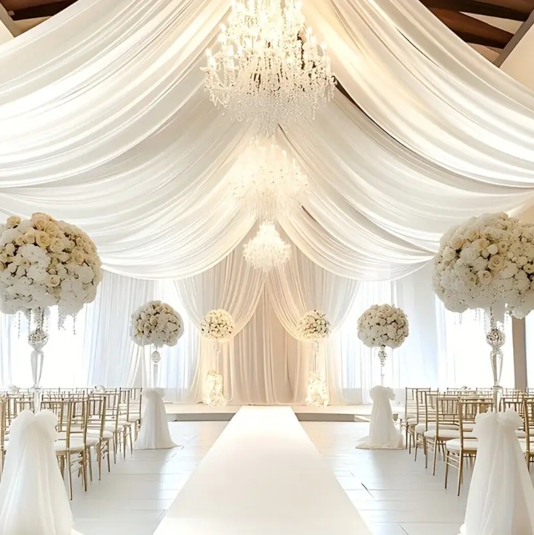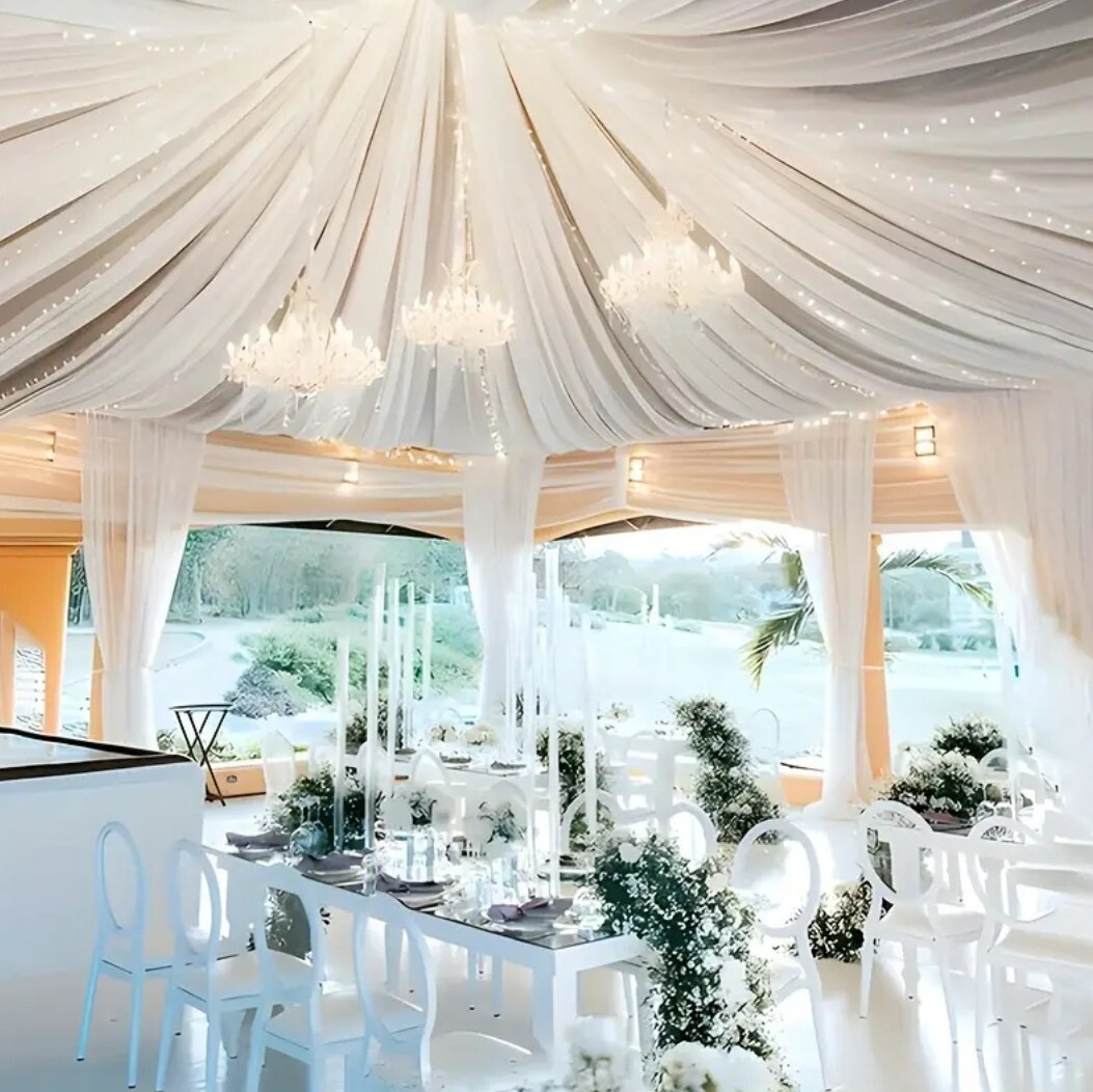 1162【新品未使用】ホワイトシーリングドレープ 結婚式800cm x 160cmシフォン 背景 カーテン パーティー用シーリングドレープ ウェディング 收藏