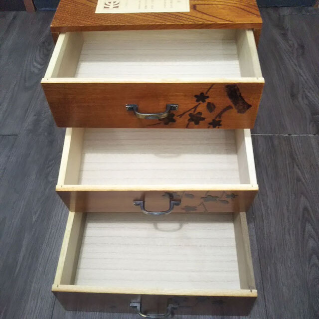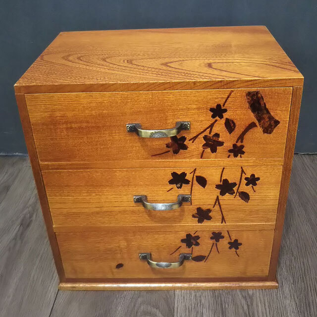WOODWERE KS 収納棚 木製 3段 引き出し ミニチェスト 小物入れ 道具箱 花柄 和柄 レトロ 現状渡し 收藏