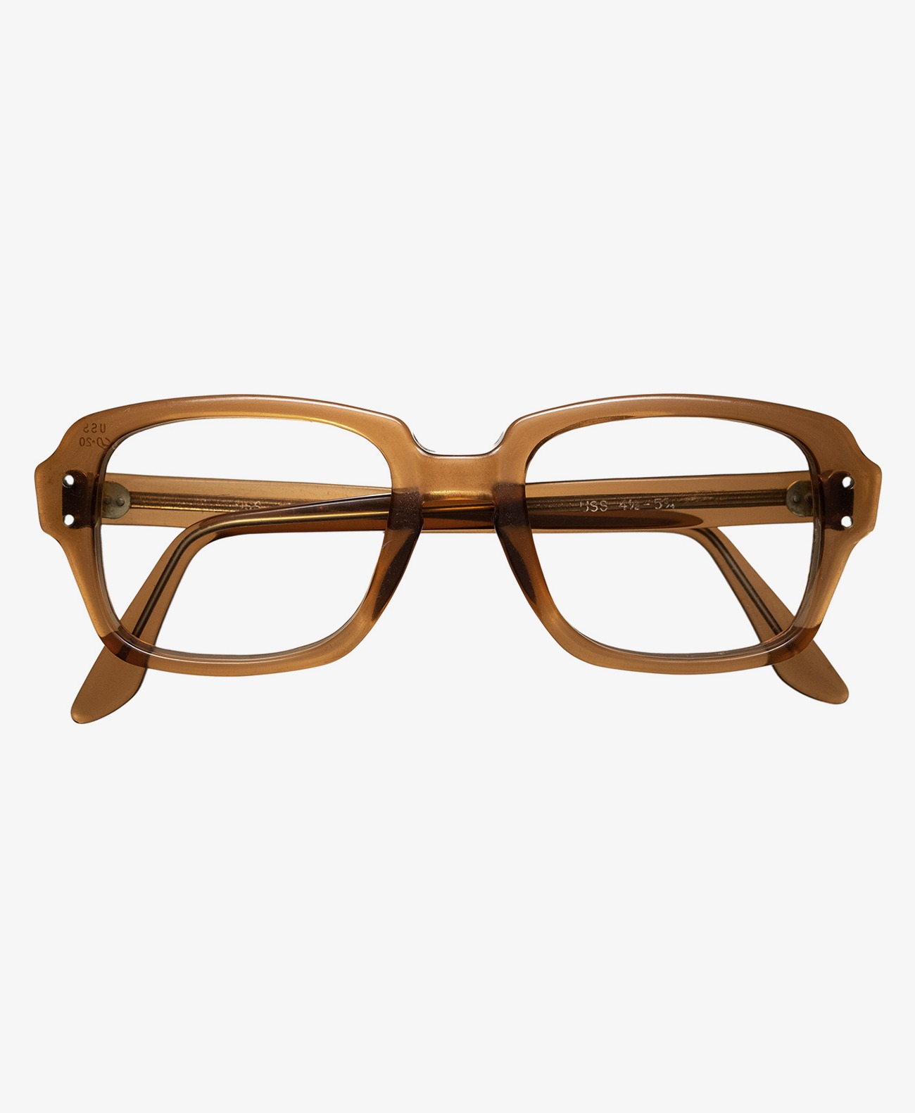 [良品60's~70's USAヴィンテージ眼鏡 50-20 肉厚フレーム USSアメリカ海軍ミリタリー ブラウン ウェリントン スクエア サングラスRomco1422] Supreme(シュプリーム)など有名ブランドがデザインソースとしていたことでも知られる、 USS(アメリカ海軍)ミリタリー、MADE IN USA、肉厚でファットなスクエアフレーム。 ミリタリーVINTAGEならではの"深み"がありつつも、様々なファッションに取り入れやすい 汎用性・デザイン性の高い完成された一本。 タフなセルロイド、シンプルな2DOTヒンジ、フロントは凹凸の少ないフラットな印象。 多くの方にフィットする[ 50mm(表記)レンズの大きめのGOODサイズ ]。 普段使いの眼鏡としてはもちろん、サングラスとしての使用もオススメ。 他にもヴィンテージUSSフレームを多数ご用意しております。 様々なサイズ、カラー、シェイプ、それぞれ特有の表情を持つフレームの中から、ベストな一本をお探しください。 <ヴィンテージメガネ全品はコチラ>からご覧ください。 ・コンディション