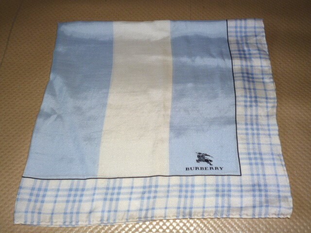 バーバリー BURBERRY ブルー ホワイト ホースマーク 大判ハンカチ 57.5cm×56.5cm 未使用 絹糸を使用 收藏