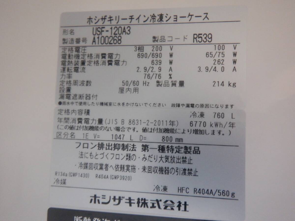 TKR7C-1/ホシザキ/リーチイン冷凍ショーケース/USF-120A3/三相200V+単相100V/2021年製 收藏