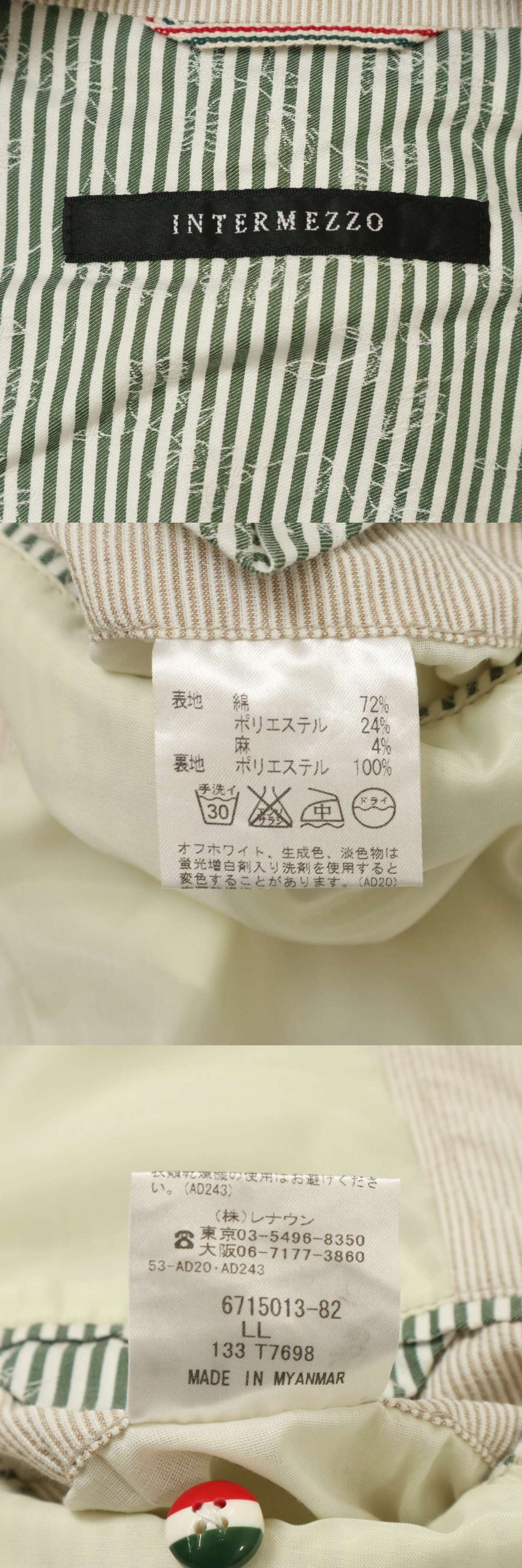 INTERMEZZO インターメッツォ レナウン 春夏★ 麻 リネン混 ストライプ カジュアル ジャケット Sz.LL メンズ 大きいサイズ C5T02562_3#M 收藏