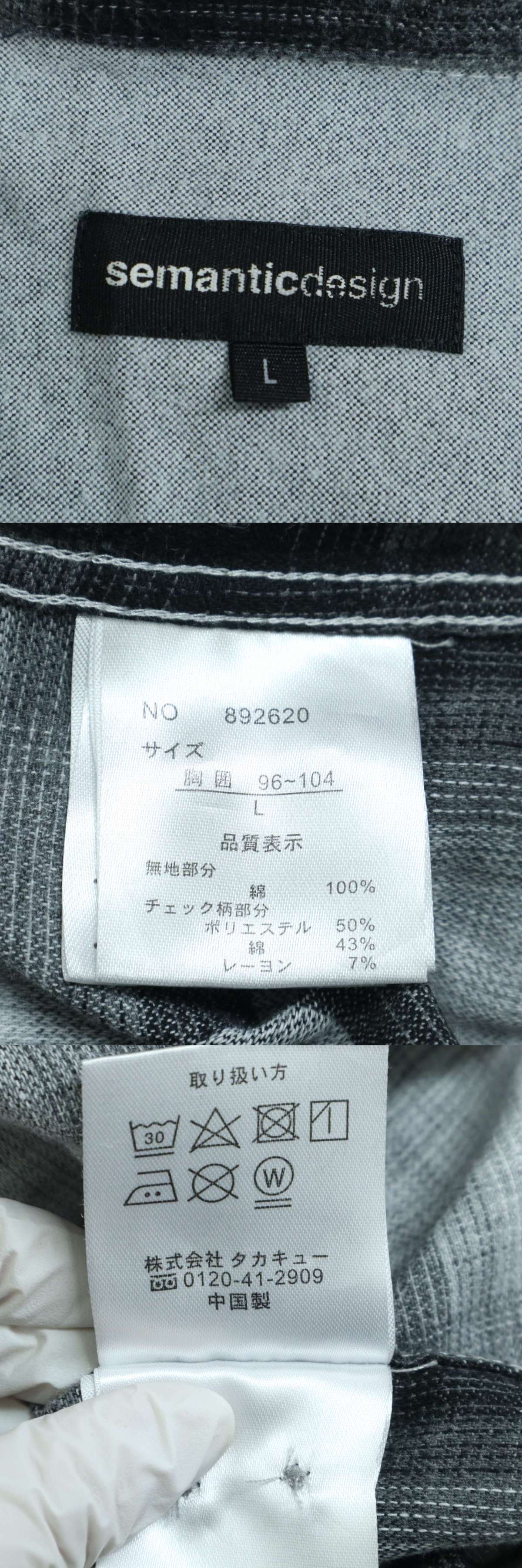 | semantic design セマンティック デザイン 秋冬★ チェック 長袖 切替 ネル シャツ Sz.L メンズ E5G00543_2#T | |||