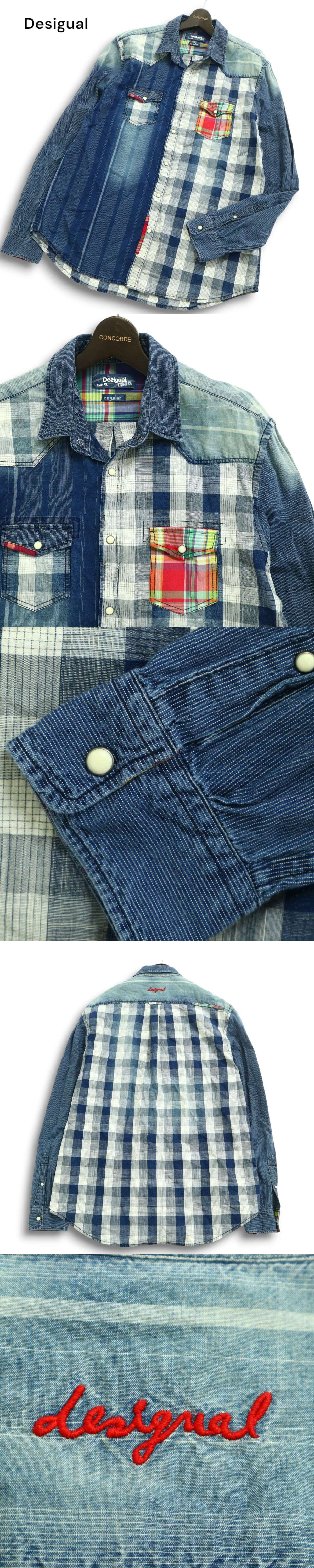 Desigual man デシグアル regular★ USED加工 クレイジー切替 長袖 ウエスタン チェック シャツ Sz.XL メンズ 大きいサイズ C5T03483_4#C 收藏