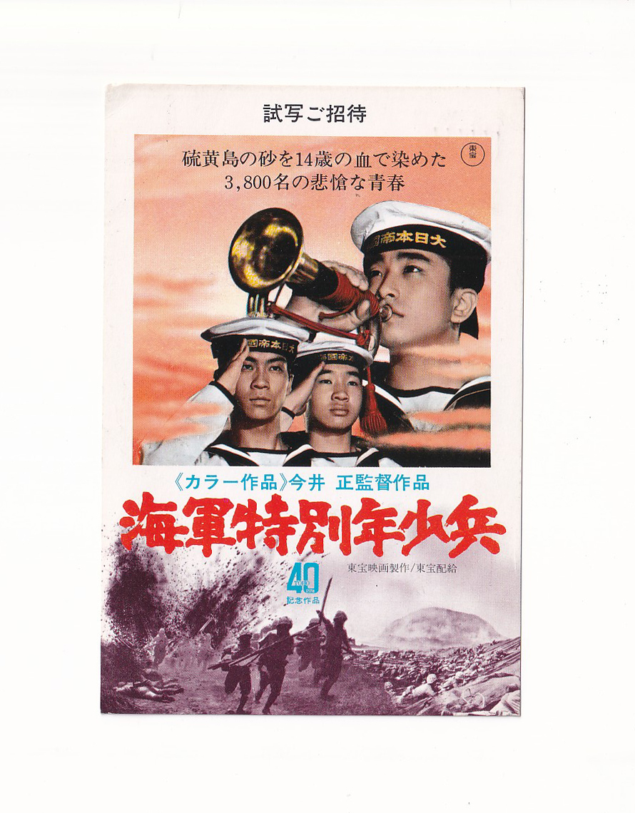 映画試写会状(東宝40周年記念作品)地井武男、佐々木勝彦「海軍特別少年兵」今井正監督