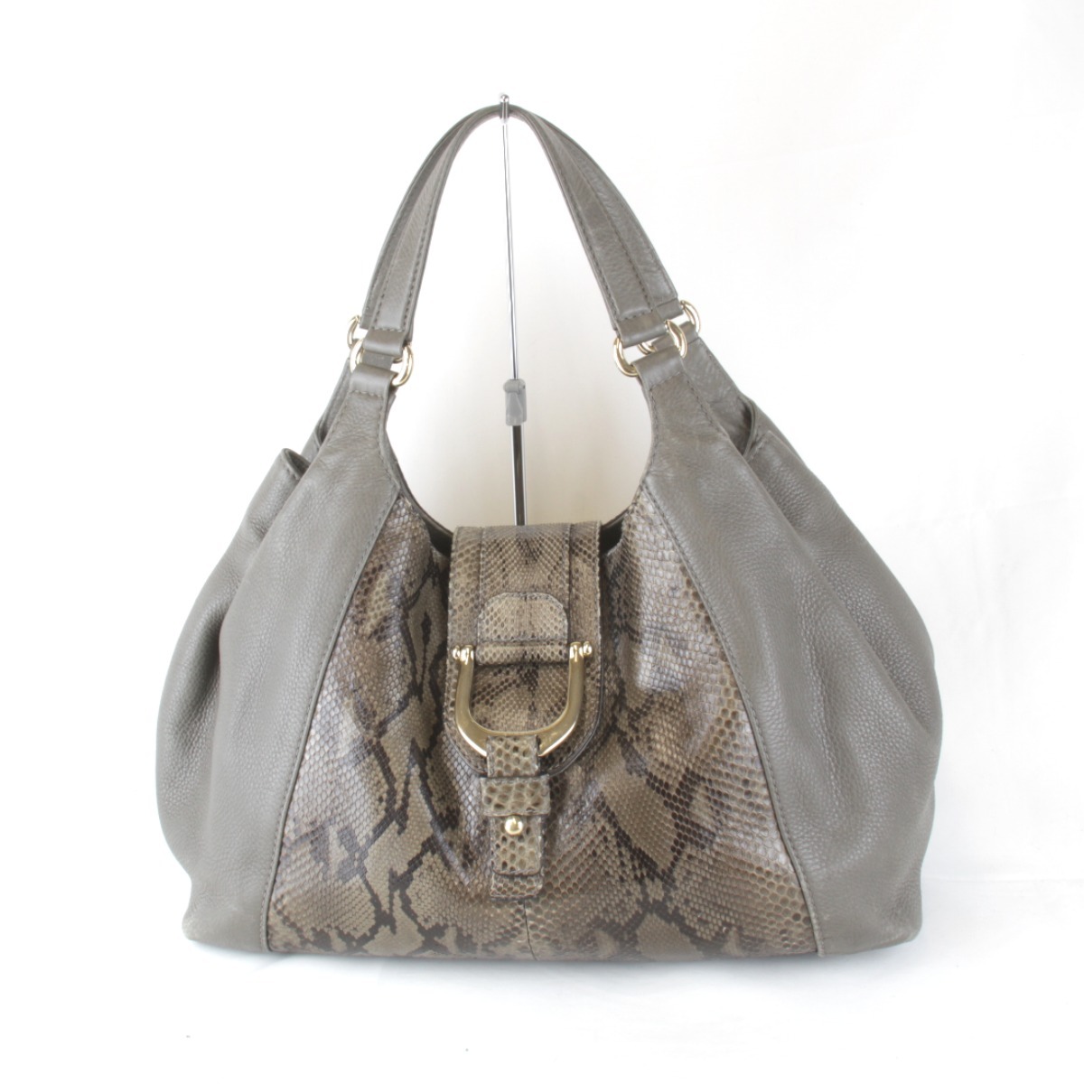 良品『USED』GUCCI グッチ 268747・493075 ハンドバッグ グレー パイソン/レザー 收藏