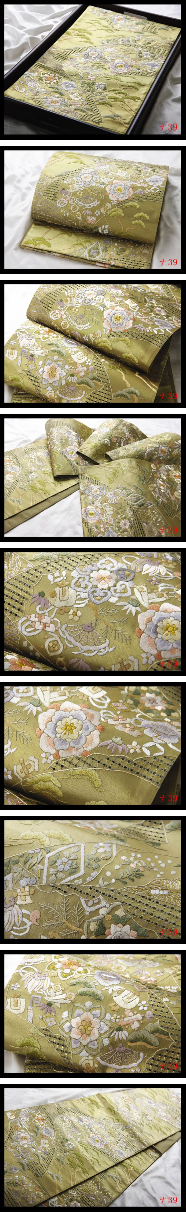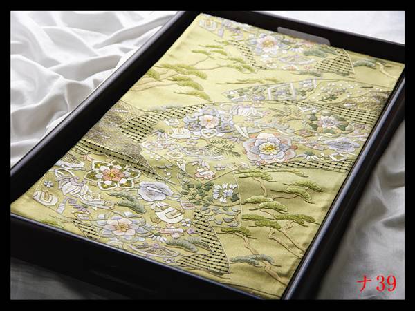 【ナ39】厳選逸品 総刺繍 スワトウ刺繍 扇面宝尽くし 洗練された佇まい 正絹純金糸六通高級美術袋帯 検★着物名古屋帯和装小物帯締め 收藏