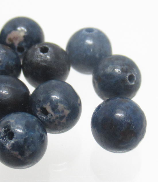 総評:鉄分の多いブルースピネルと、コバルトを多く含むブルースピネルがモザイク状に集合し形成された希少のブルースピネルは、ジュエリー業界やルース業界では非常に人気が高く、ビーズになることはほぼなく、現在市場に出ているビーズが無くなり次第、再入荷がないほど希少です。仕分けにより、金雲母(褐色部分)が点々と表面に露出している部分が微々ざらつきますが、アメサイト(白い部分)が少なく、コバルトブルーカラーがビーズ全体に広がります。白く見える部分は「アメサイト」、褐色の斑点状の鉱物は「フロゴパイト」という鑑別結果が出ています。また、天然石ですので完璧ではありません。あとは天然石の特性上をご確認ください