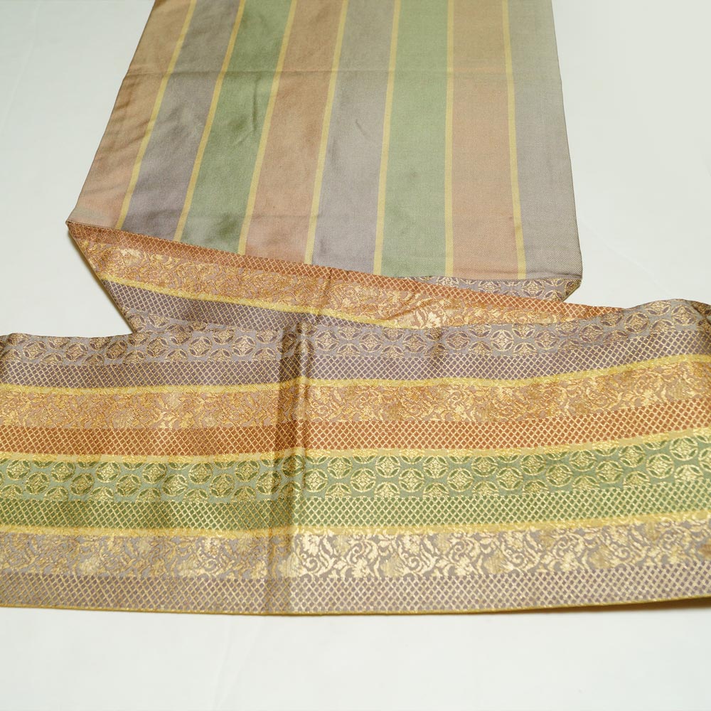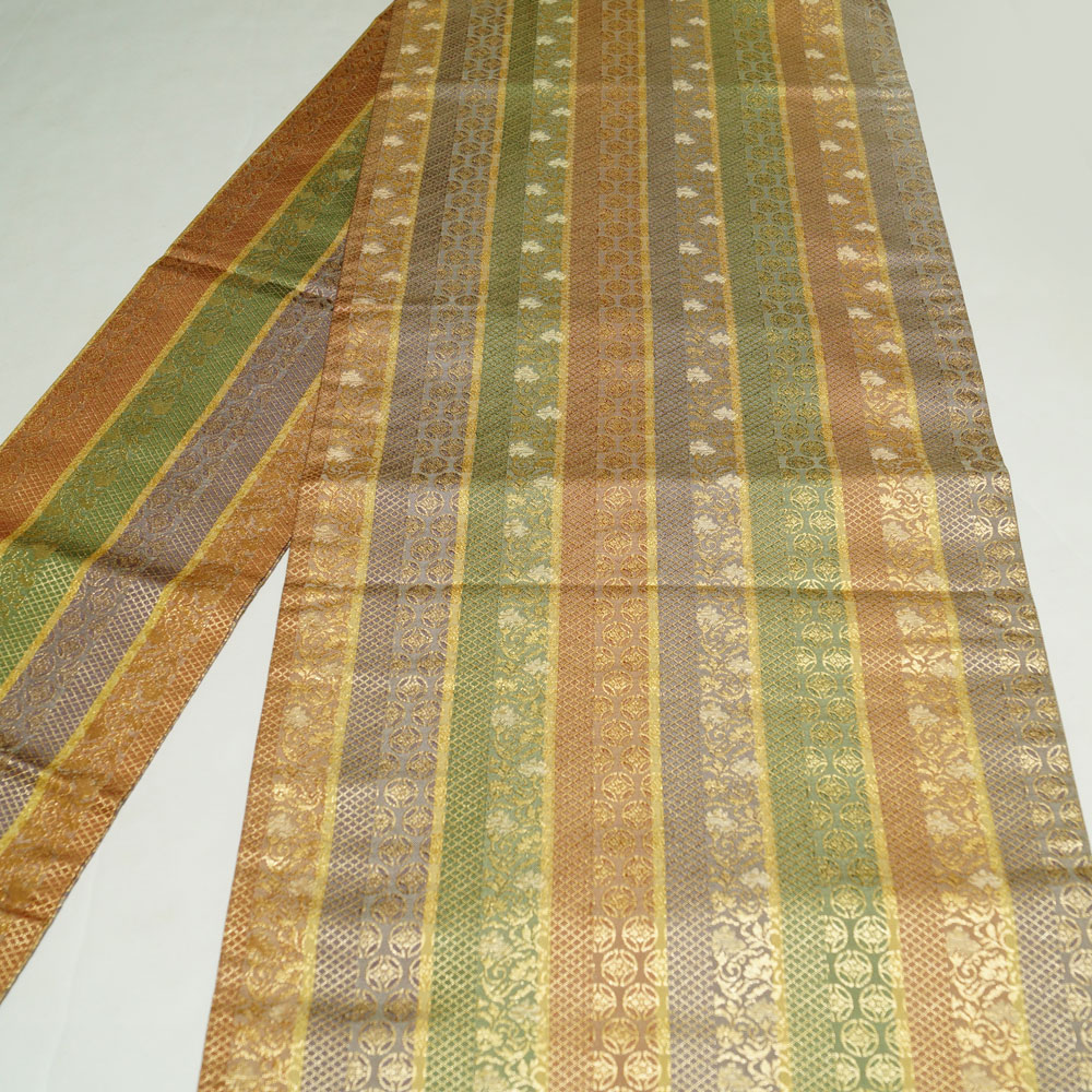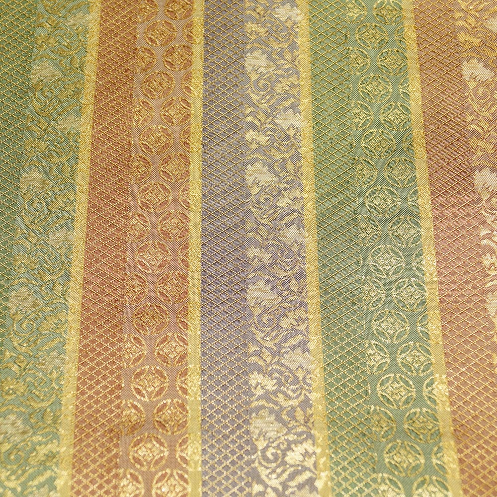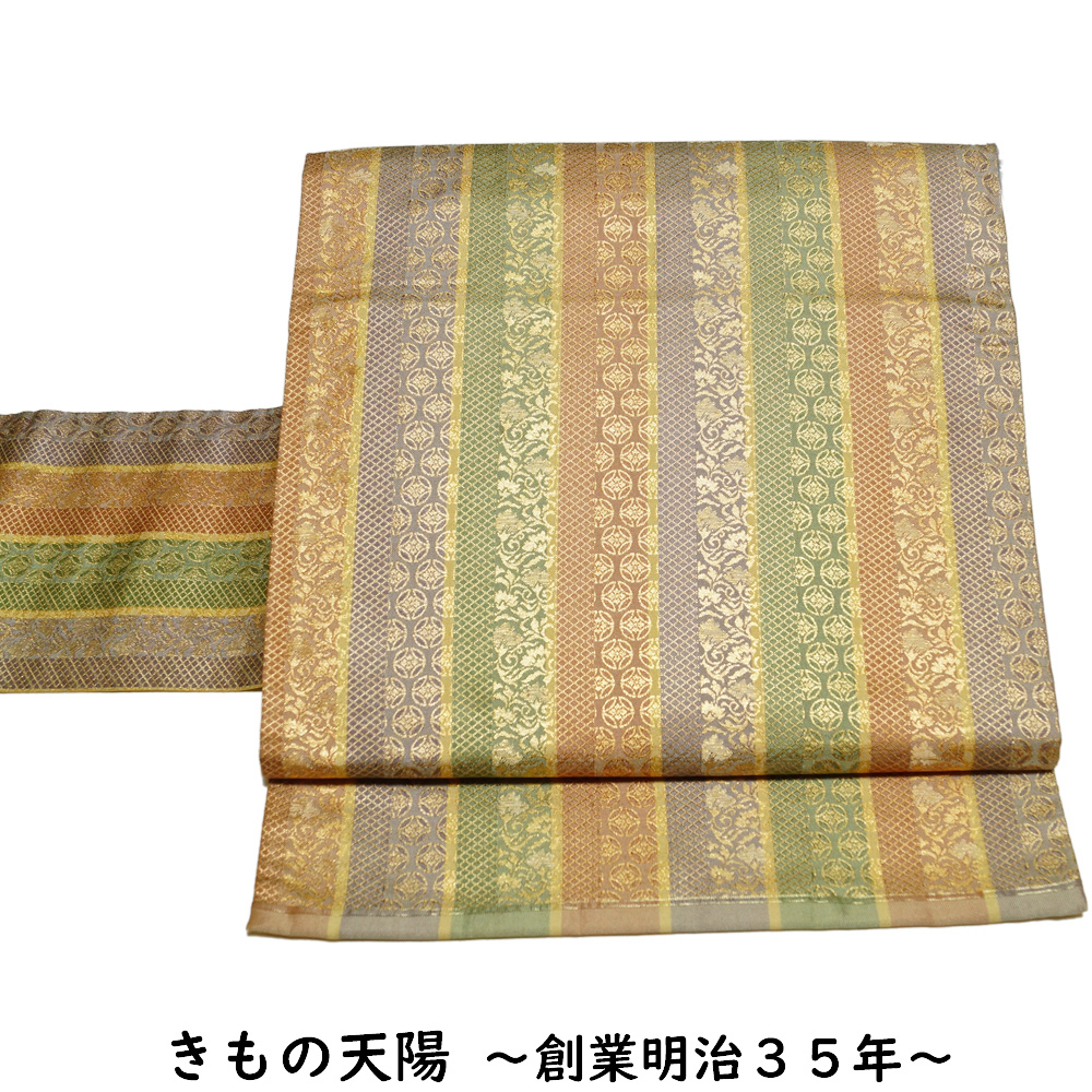 名古屋帯 間道に吉祥模様 六通柄 金糸 セミフォーマル向き 名古屋 帯 中古 なごや帯 リサイクル着物 女性和服 着物 帯 天陽 收藏