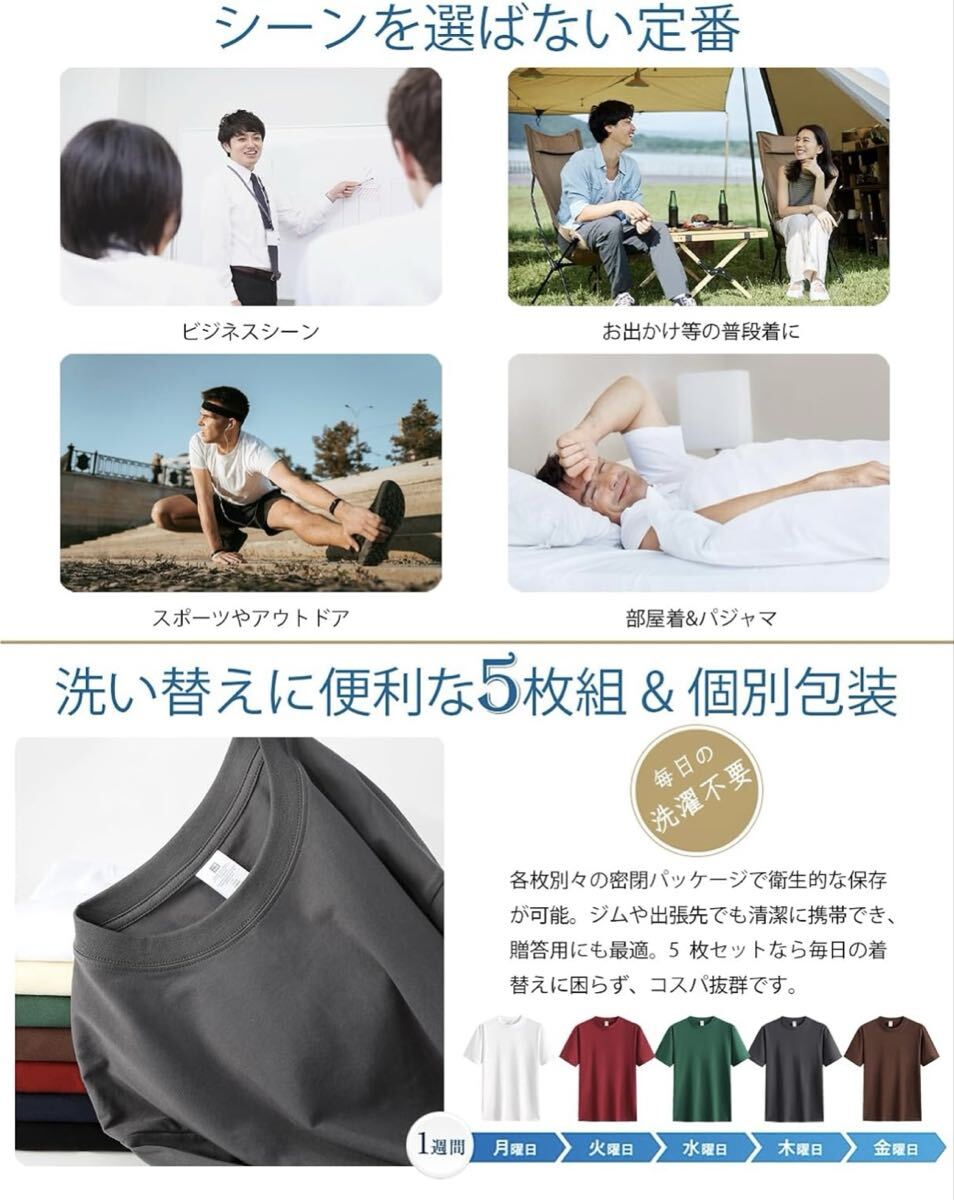 サイズ:XL インナーシャツ 5枚組 コームドコットン 收藏