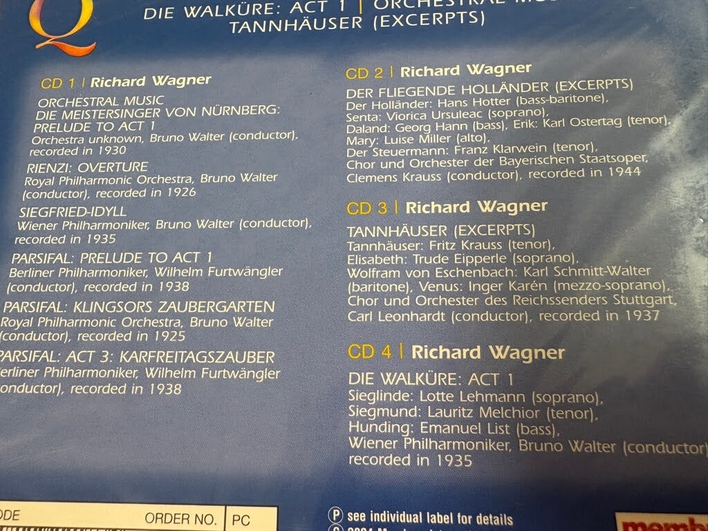 F7/未開封 4枚組CD クアドロマニア ワーグナー ポートレート WAGNER PORTRAIT ワルキューレ ワルター 管弦楽 リエンツィ パルジファル 收藏