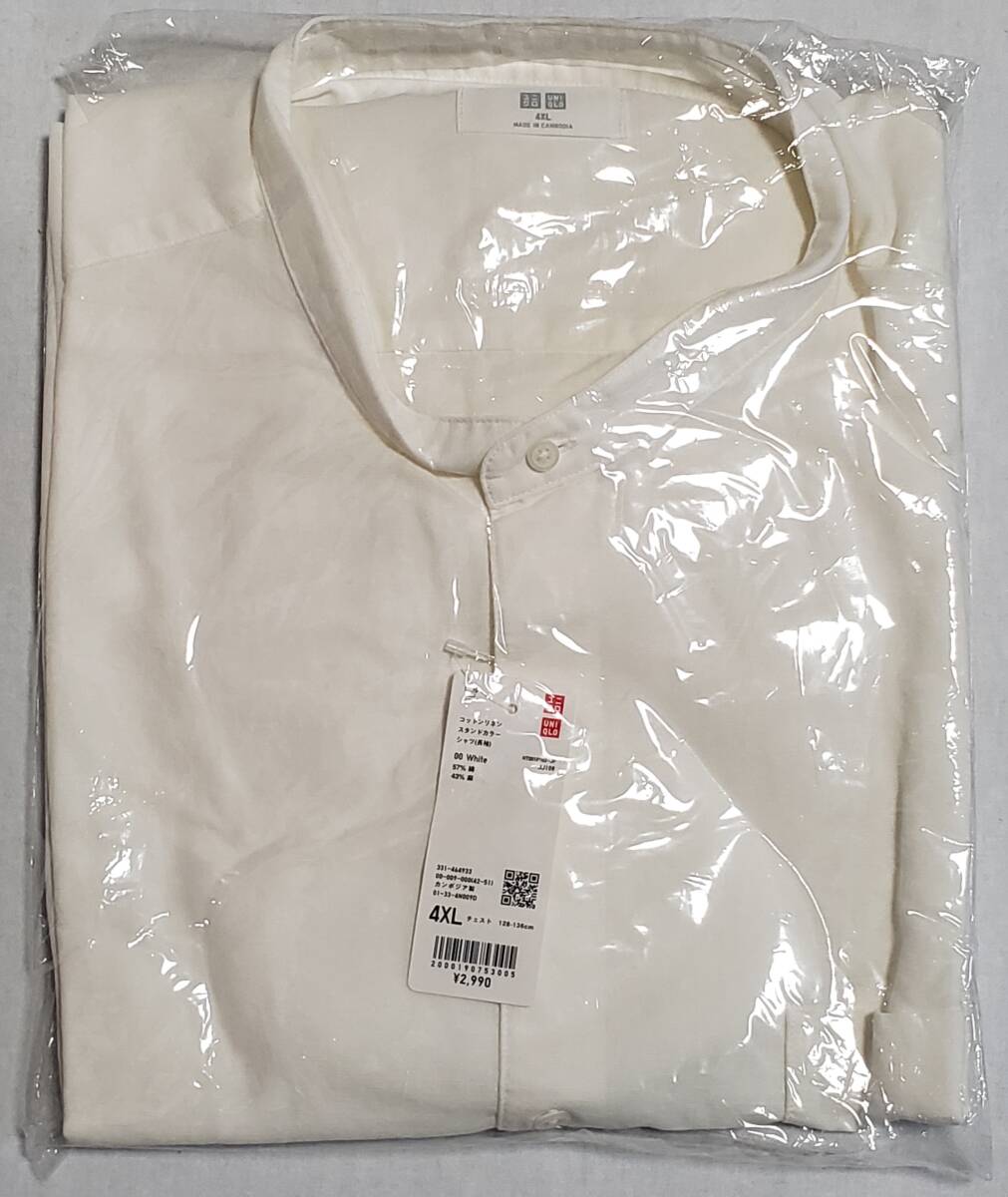 UNIQLO「コットンリネンスタンドカラーシャツ(長袖)」になります。