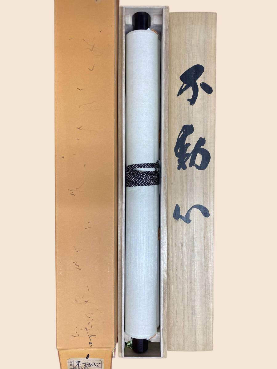 掛軸の軸先ですが、配送中の振動・気温・経年劣化等で外れてしまうことがあります。軸先の外れは、返品の対象にはなりません。大変お手数ですが、お客様ご自身での修復をお願い致します。