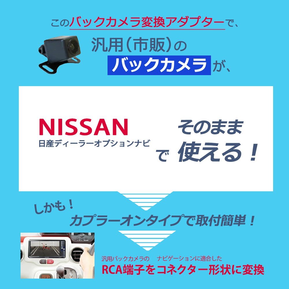 ![]() 日産/三菱 ナビに使用できる 「バックカメラアダプター」です (汎用品ですので純正品と形状は異なります) ■ナビゲーションの交換 ■純正カメラは値段が高い ■前の車両で汎用カメラを使用していた ■ナビはそのままで汎用バックカメラを取り付けたい などに RCA端子でないバックカメラ専用入力に RCA映像出力を装備したバックカメラユニットを接続するための変換コネクターです 簡単取付のカプラーオンタイプ ナビ本体にガイドライン表示機能がある機種はガイドライン表示が可能ですので、ナビ側にて設定を行って下さい 設定方法は各ナビゲーション販売店様へご相談ください ※ 取付は自己責任で行ってください 誤った取付をされると車両に重大な支障をきたす場合がございます その場合は、当方は一切の責任を負いません ※ すべての社外カメラとの組み合わせの動作を保証するものではございません ※ 取付可能なカメラはRCA(映像)端子付きCMOSカメラです ※ CCDカメラにはカーナビ自体が対応しておりませんので取り付けする事は出来ません ※ 取り付け箇所がナビ背面ではない場合があります。説明書・配線仕様図などをご確認ください。 ![]() |