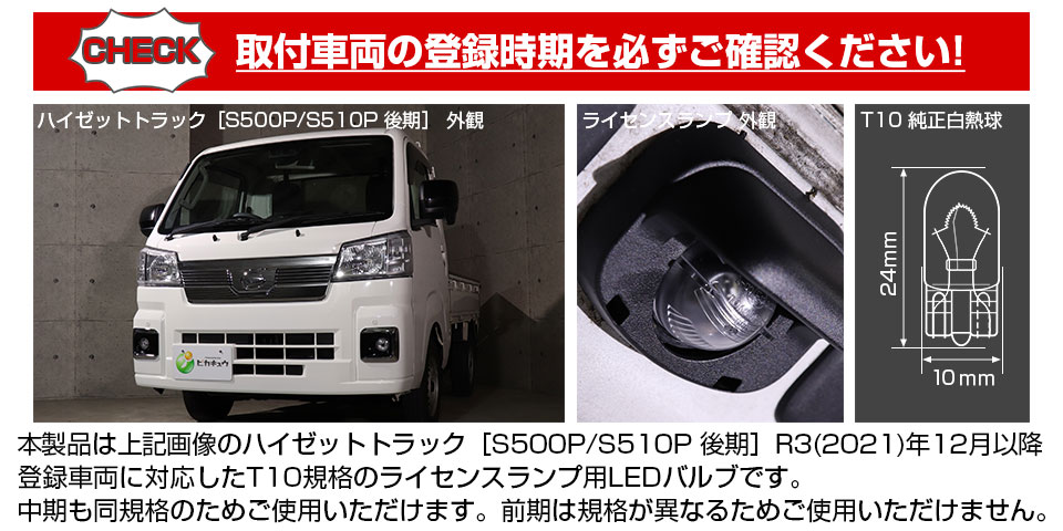 ピカキュウ,LED専門店,LEDバルブ,LED,SMD,T10,W5W,ライセンスランプ専用,ナンバー灯専用,ホワイト,ダイハツ,DAIHATSU,ハイゼット,ハイゼットトラック,HIJET TRUCK,S500P,S510P