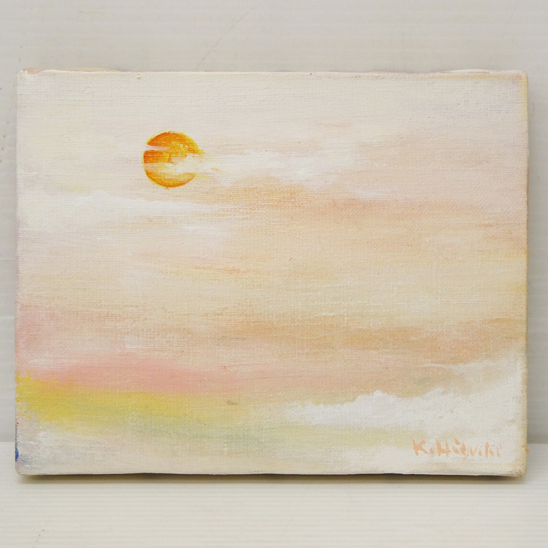♯ 肉筆 樋口和巳 海霧 油彩 風景画 F0号 在銘 額装入り!! 二科展多数入選 富士山や雲海を得意とする実力画家 太陽 海景 幻想的風景 絵画 收藏